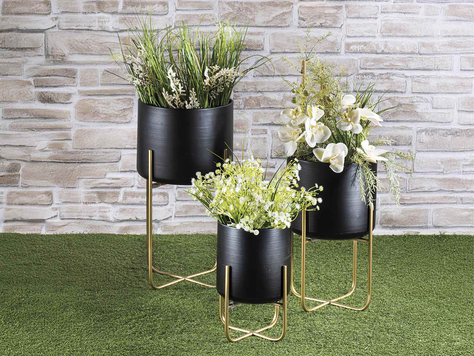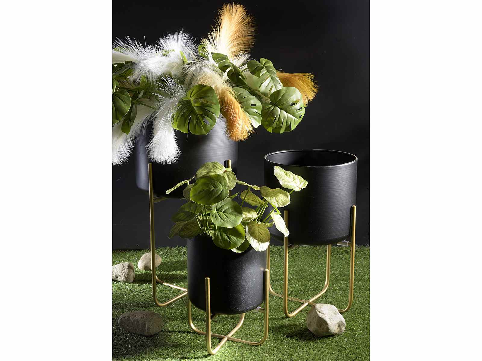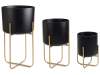 Set 3 vaze din metal negru cu suport auriu