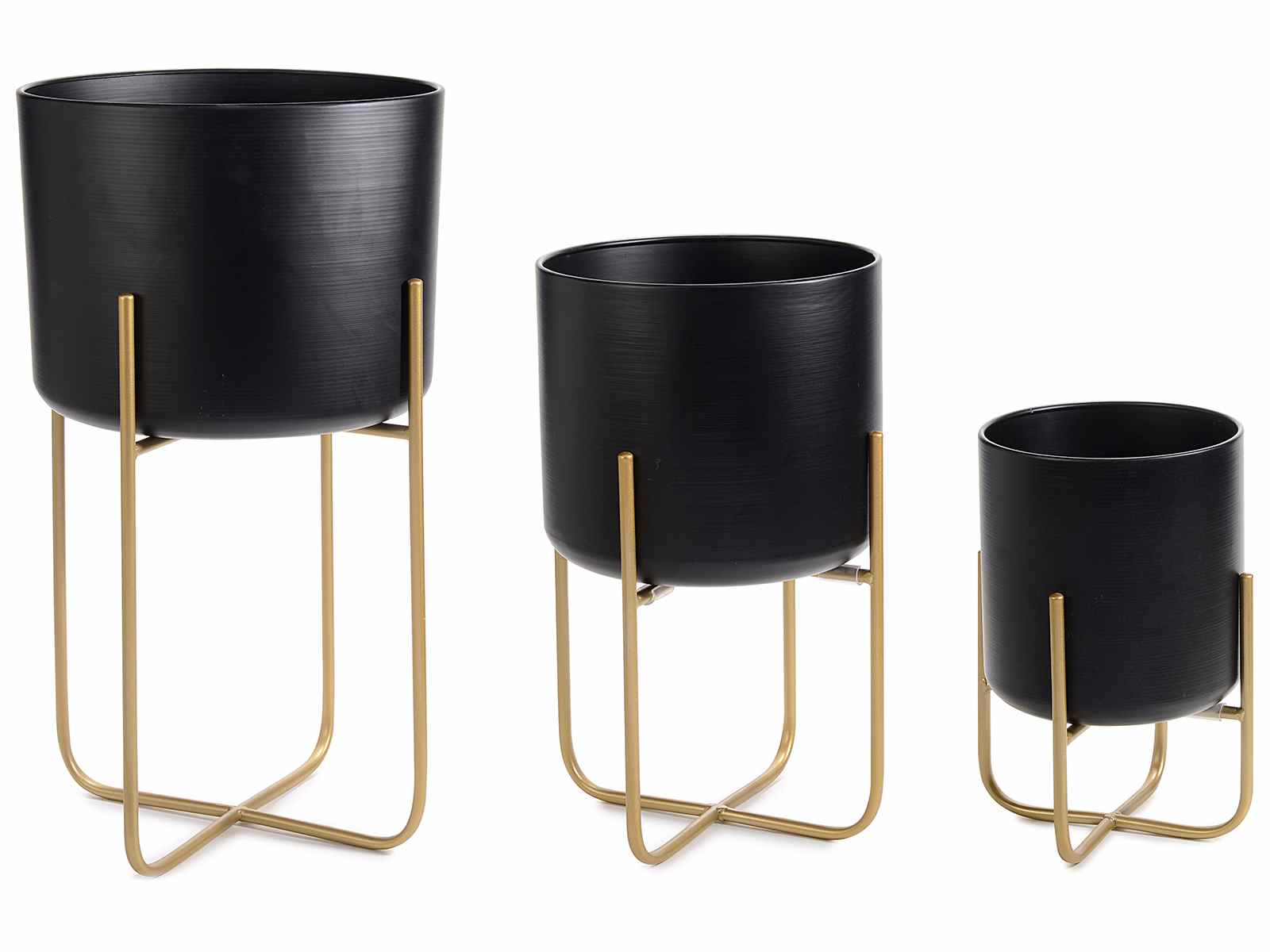 Vaze din metal negru cu suport de culoare aurie intr-un set de 3 piese