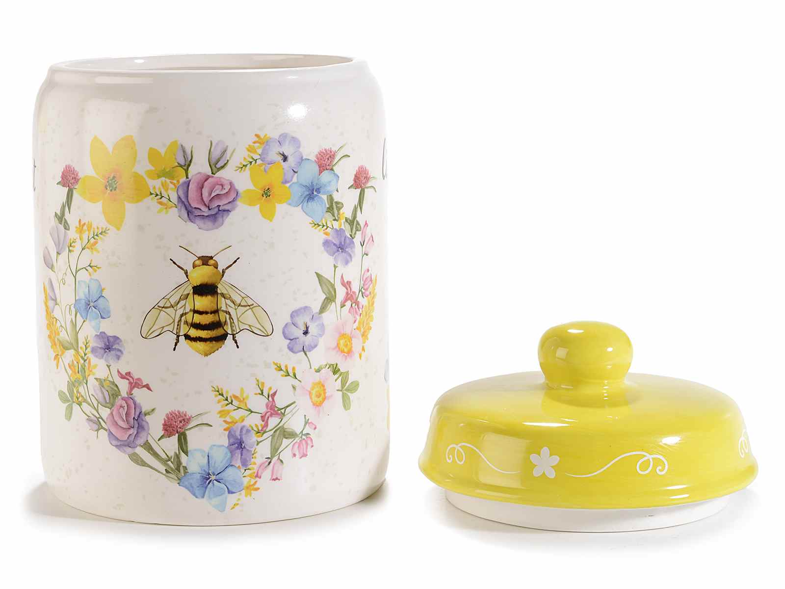 Set de 2 borcane ceramice decorate cu albine și miere pentru fursecuri, recipiente pentru alimente și borcane pentru dulciuri.