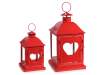 Set de 2 felinare metalice roșii cu sculptură în formă de in