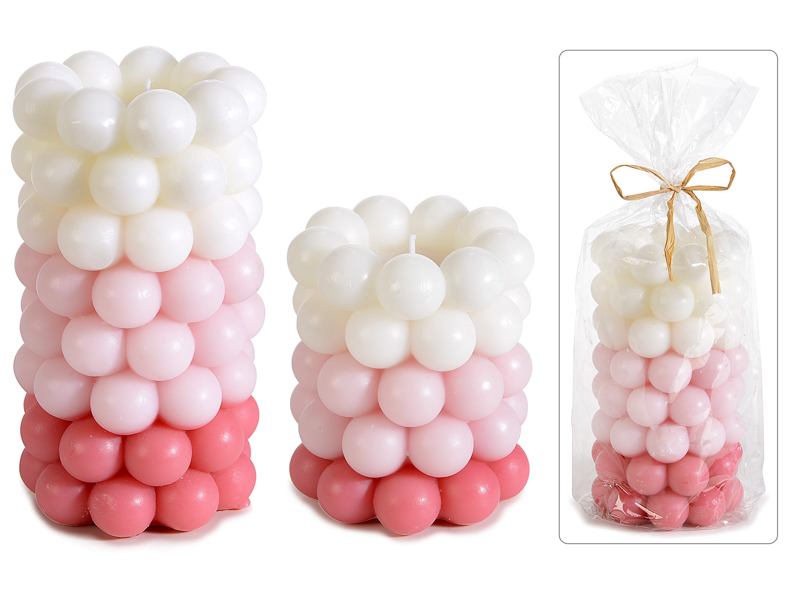 Lumânări cilindrice multicolore cu bule/perle, în pachet individual, set de 2
