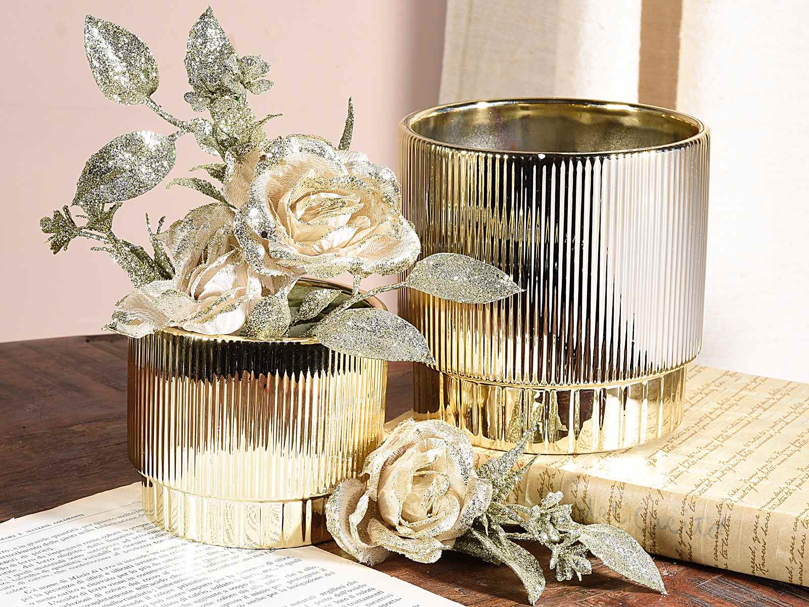 Set de 2 vaze ceramice aurii cu efect zimțat