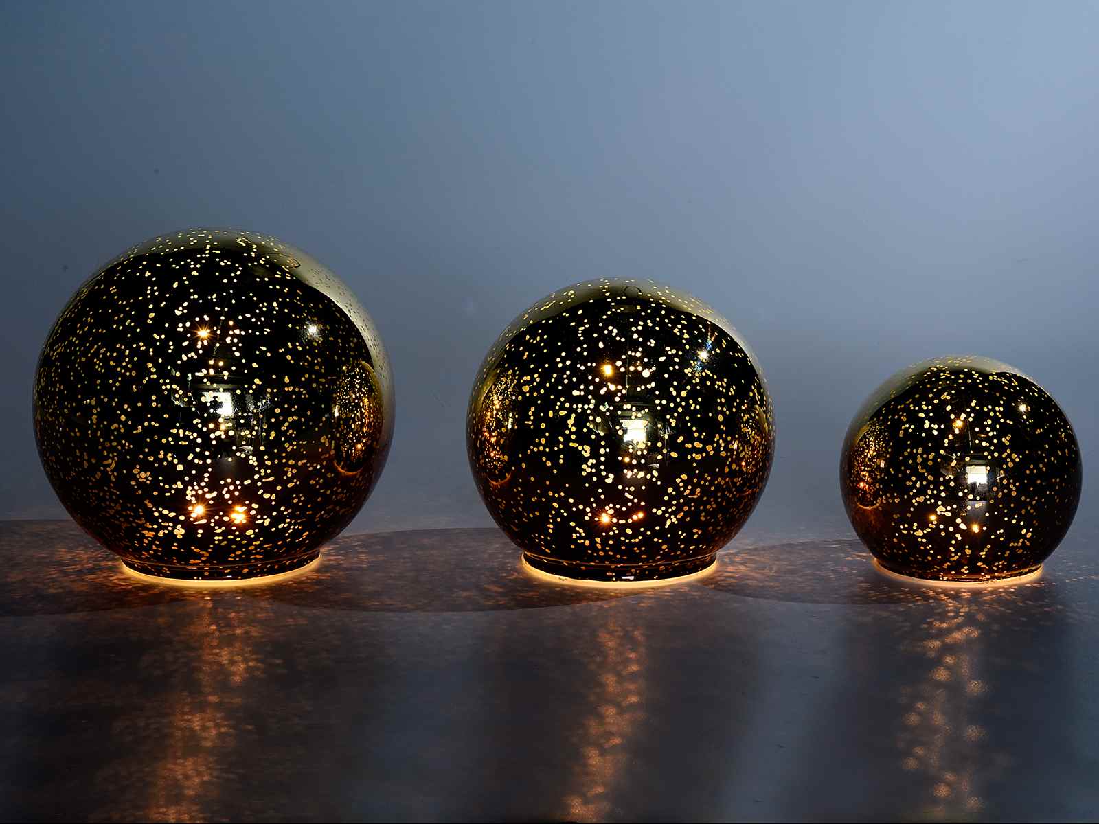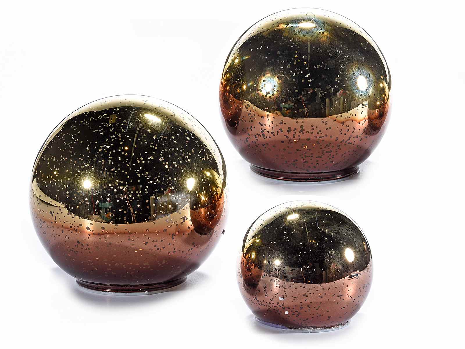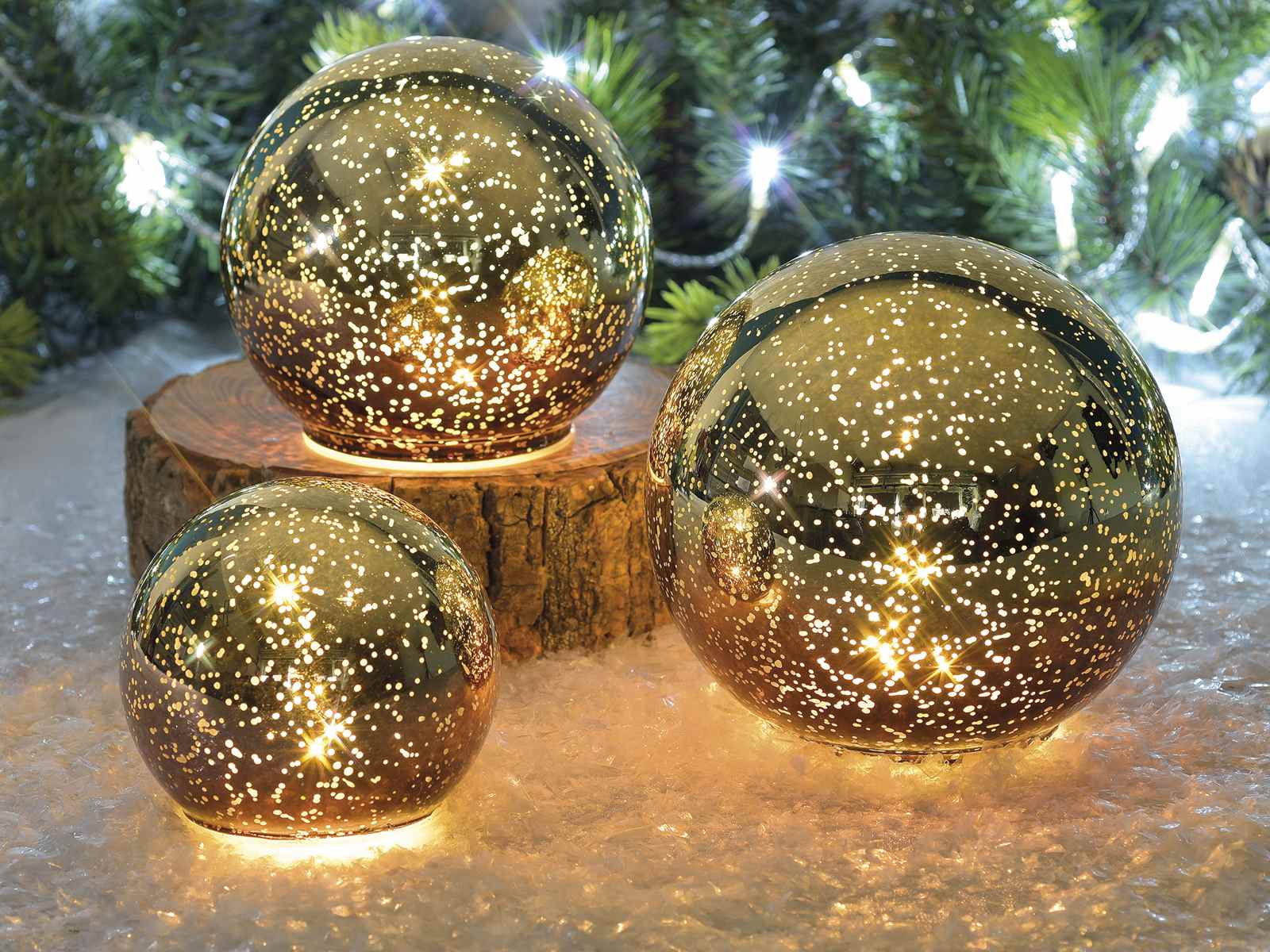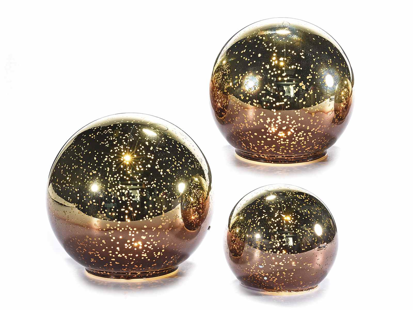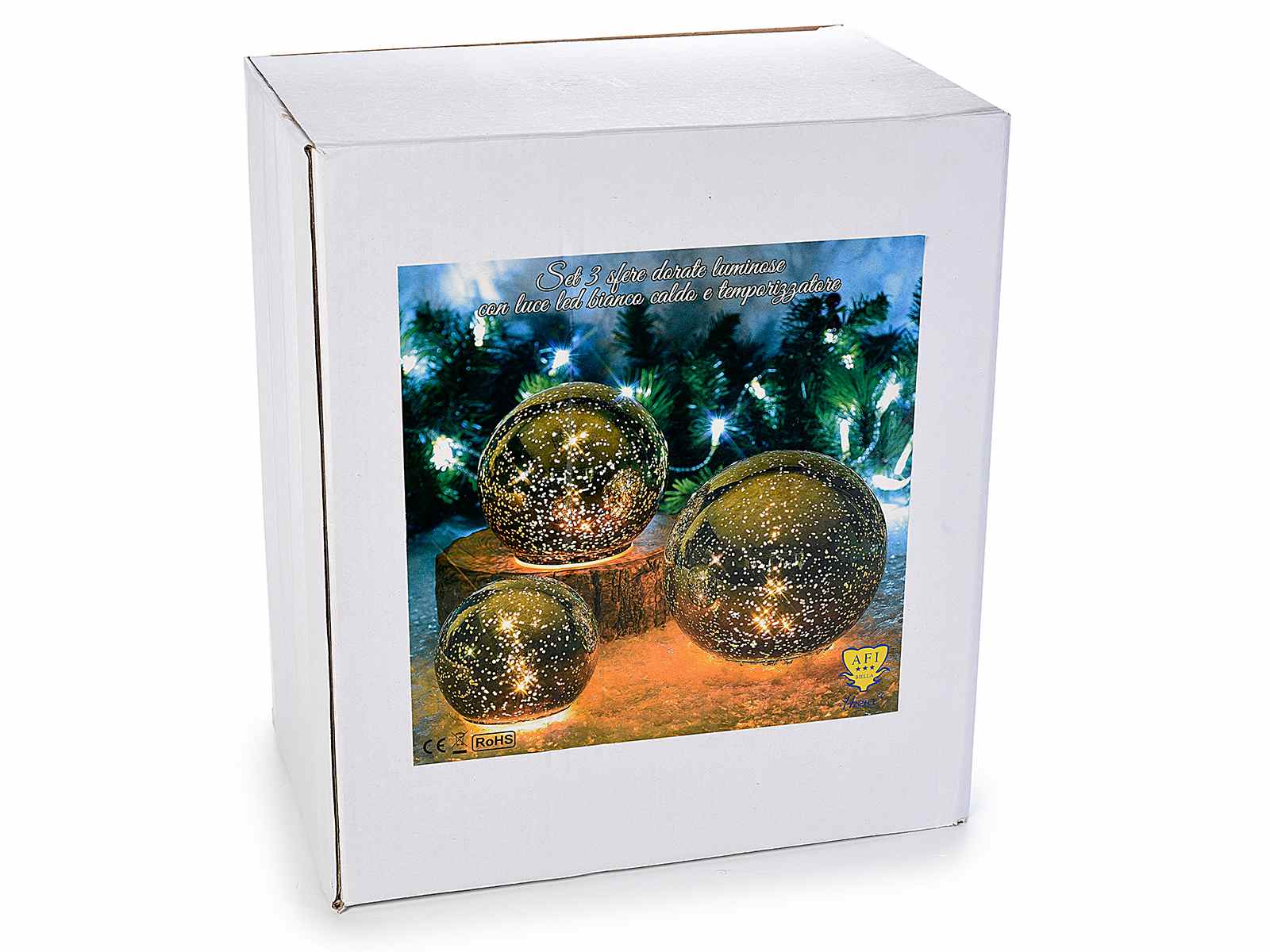 Lampi Golden Sphere cu lumina LED alba calda ?i temporizator într-un set de 3