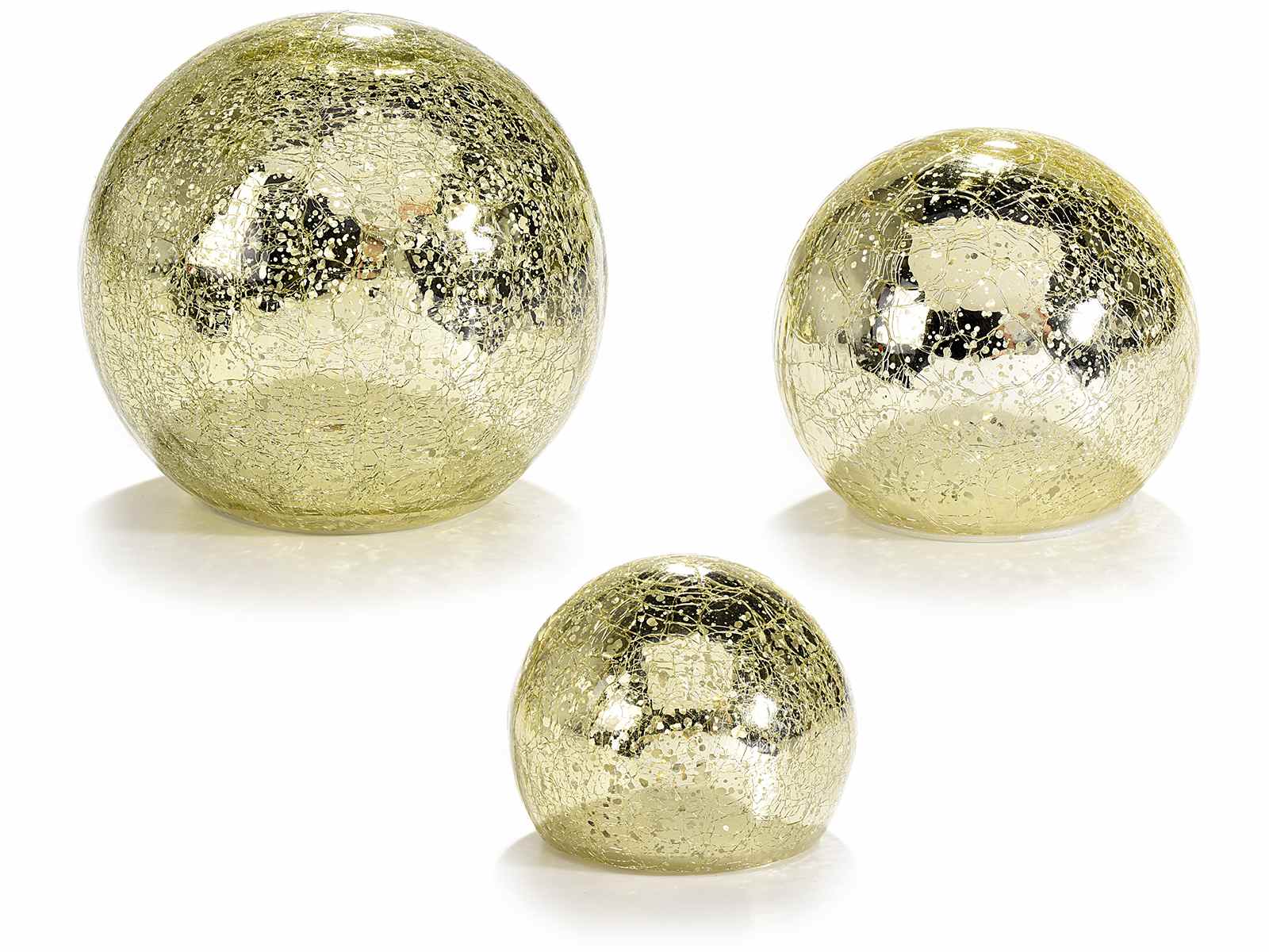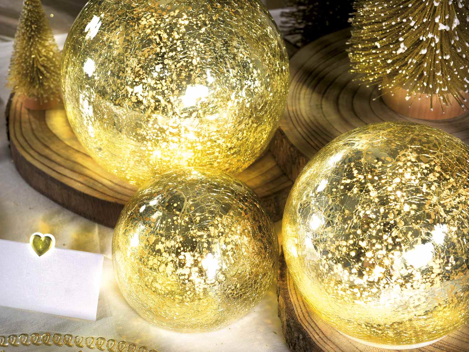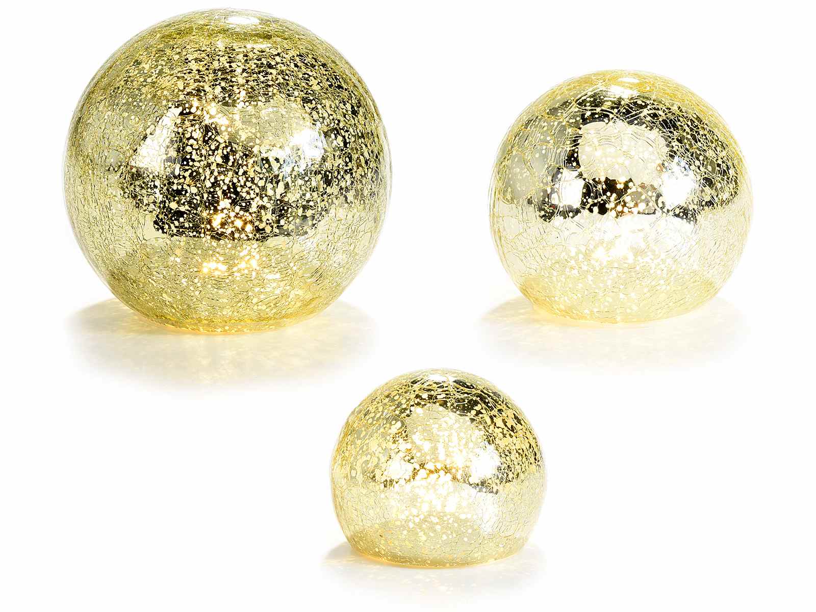 Set de 3 lampi sfere aurii cu lumina LED alba calda
