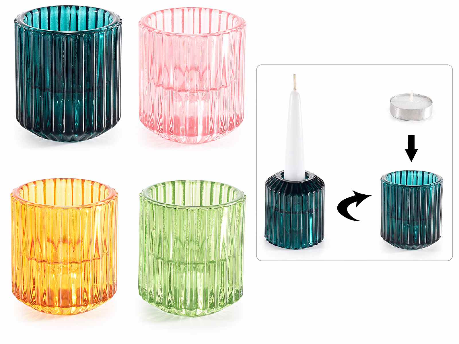 Suport pentru lumânări din sticlă moletă colorată cu dublă utilizare ca suport pentru lumânări / suport pentru canapea