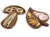 Tocătoare / tăvi din lemn de salcâm în formă de ciupercă și frunze de toamnă