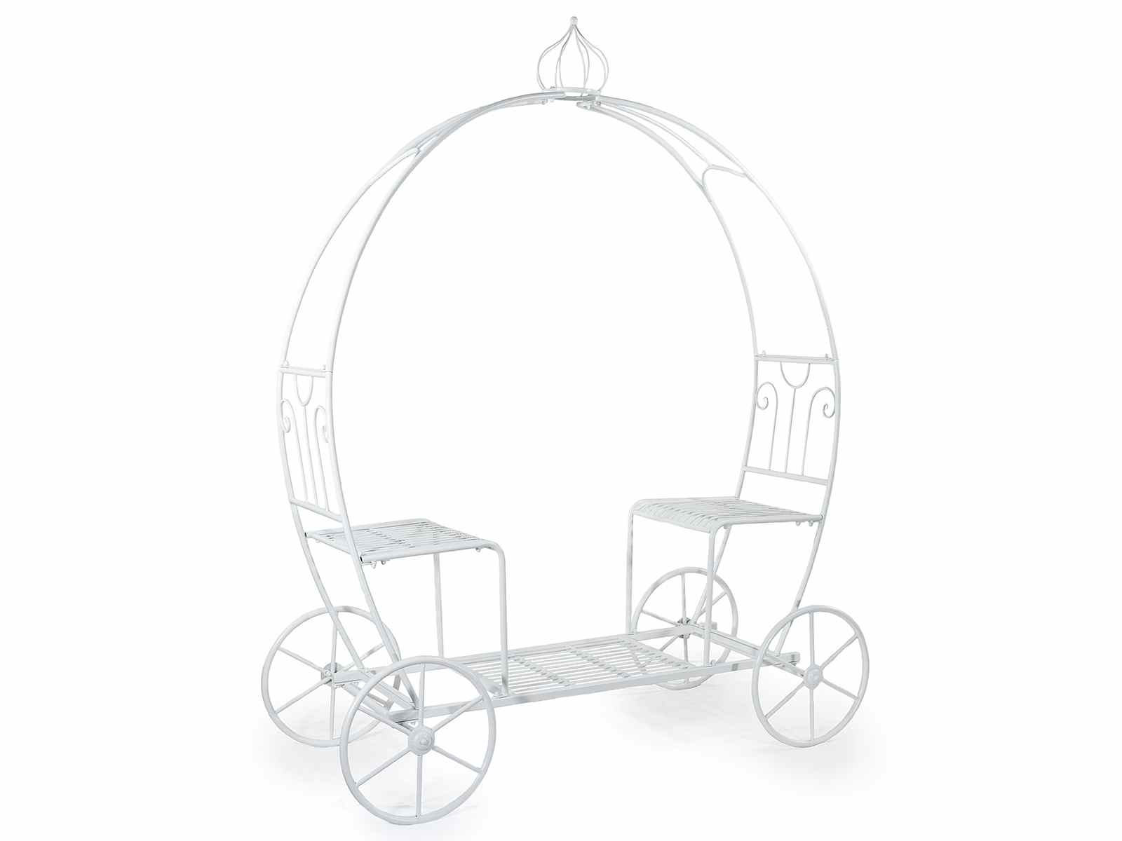 Trăsuri de basm din metal alb, cu locuri duble, ideale pentru expoziții, vitrine și evenimente.