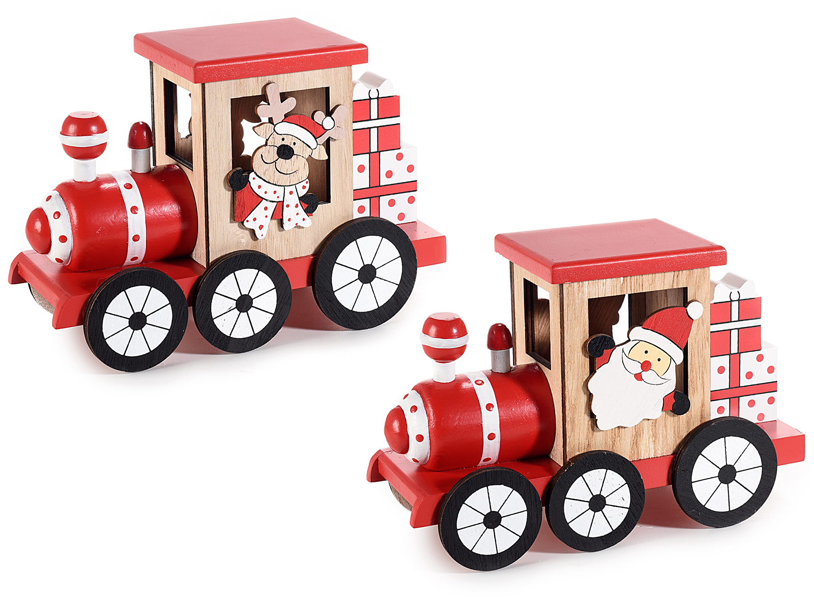 Trenuri de Crăciun din lemn colorate cu caracter de Crăciun