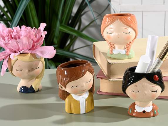 Vaze decorative / suporturi de machiaj în formă de față de fată din ceramică colorată