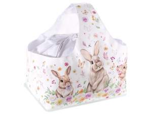 Tavi medii pentru cosuri de Paste in hartie cu manere si imprimeu iepuras