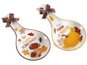 Repaus lingurita din ceramica cu ciuperci, dovleac si fraze amuzante cu fundita