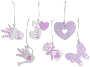Decoratiuni suspendate din lemn cu tema lavandă în afișaj de 72 de piese