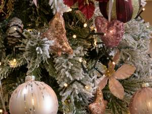 Lumini de Crăciun suspendate cu LED alb cald Decorații în formă de inimă, stea și cerc Cuore lungo: cm 35 x 48 H. Cavo: 20 cm - Funziona con 3 pile stilo non incluse - In metallo dorato con glitter