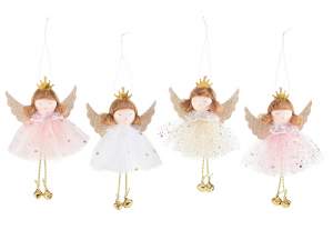 Decoratiuni de Craciun ingeri balerini cu rochii din tul si pene, aripi cu sclipici si detalii aurii. Perfect pentru brad și decorațiuni.