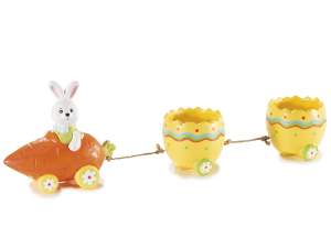 Decor de Paște tren de morcovi cu vagoane de ouă din ceramică cu iepuraș pilot