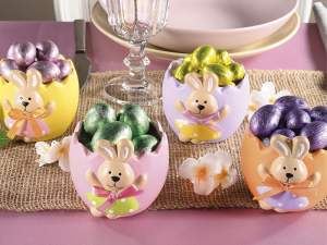 Borcane de oua din ceramica cu iepure de Paste si fundita