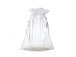Geanta din organza argintie cu inchidere cu cordon din satin ideala pentru ambalarea articolelor cadou. Eleganța țesăturii semi-transparente face ca gențile să fie perfecte pentru ambalarea favorurilor de nuntă și de nuntă de argint.