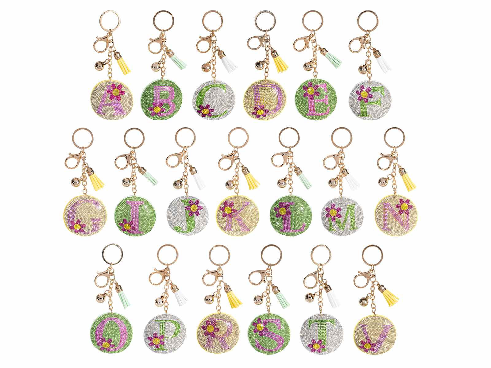 Charm/llavero letras con pedrería y borla