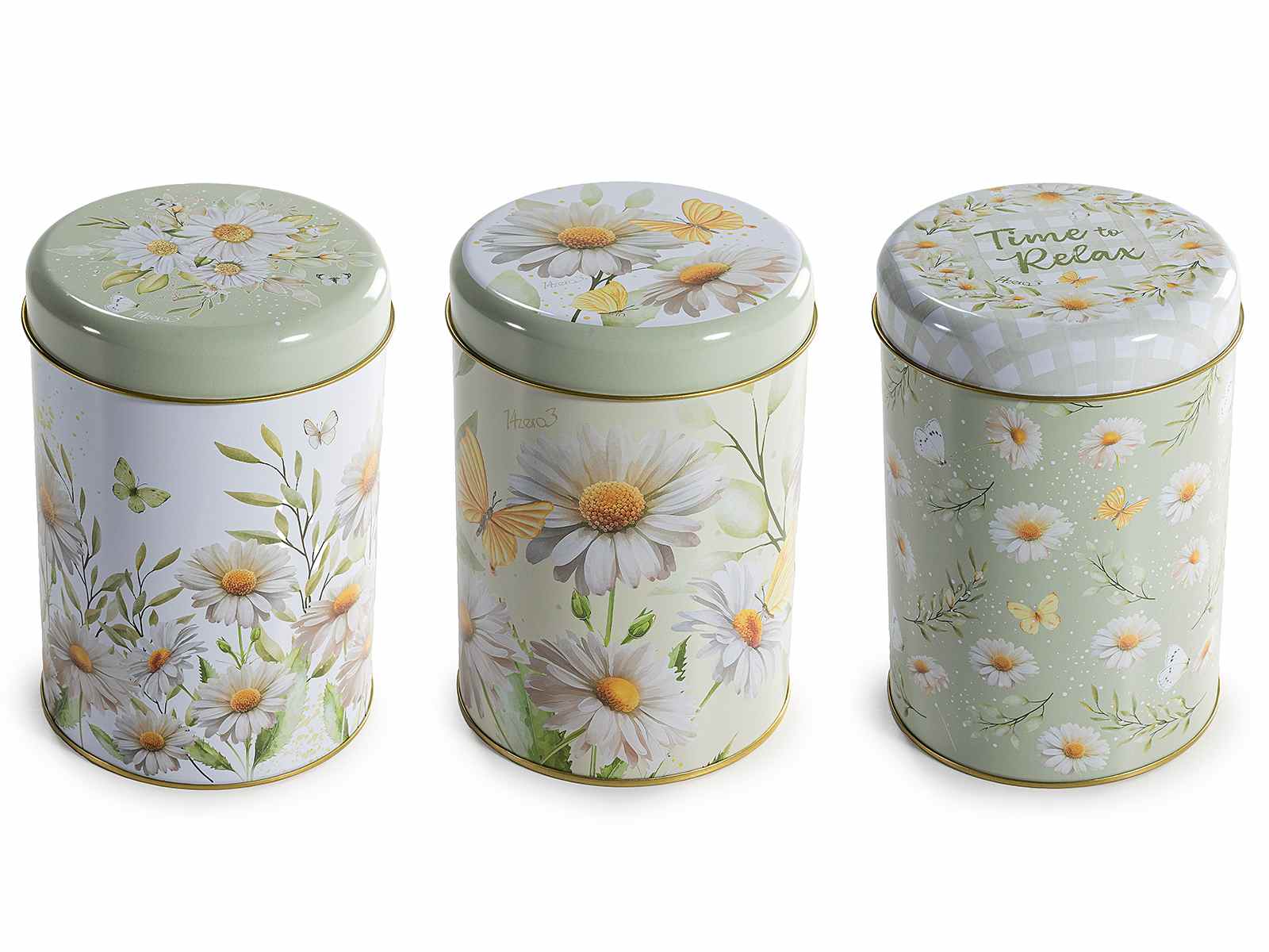 Tarro metal para alimentos con tapa decorada con manzanilla