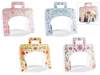 Caja de papel con forma de paloma, estampada con flores, con asa y cierre a presión.