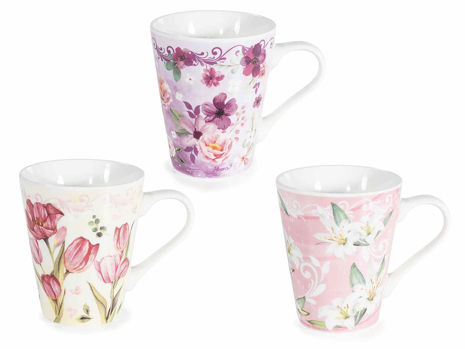 Taza de porcelana de 280 ml con decoraciones florales.