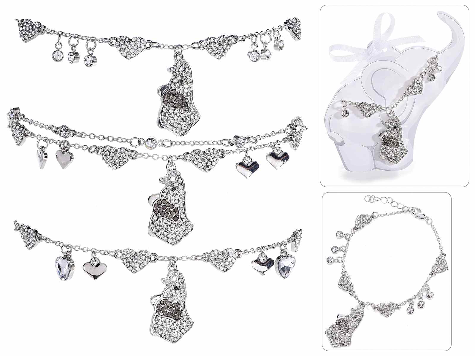 Pulsera con elefantes, pedrería y tarjeta individual a juego