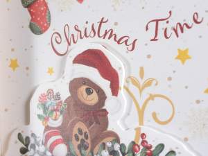 Bolsas/sobres navideños medianos de papel con decoraciones 3D con árbol de Navidad y oso.