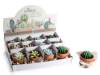 Velas con forma de suculenta en maceta de terracota con bolsa de yute y lazo. Vitrina con 12 unidades.