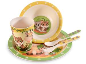 Tazas de porcelana de colores con pies y estampado infantil.