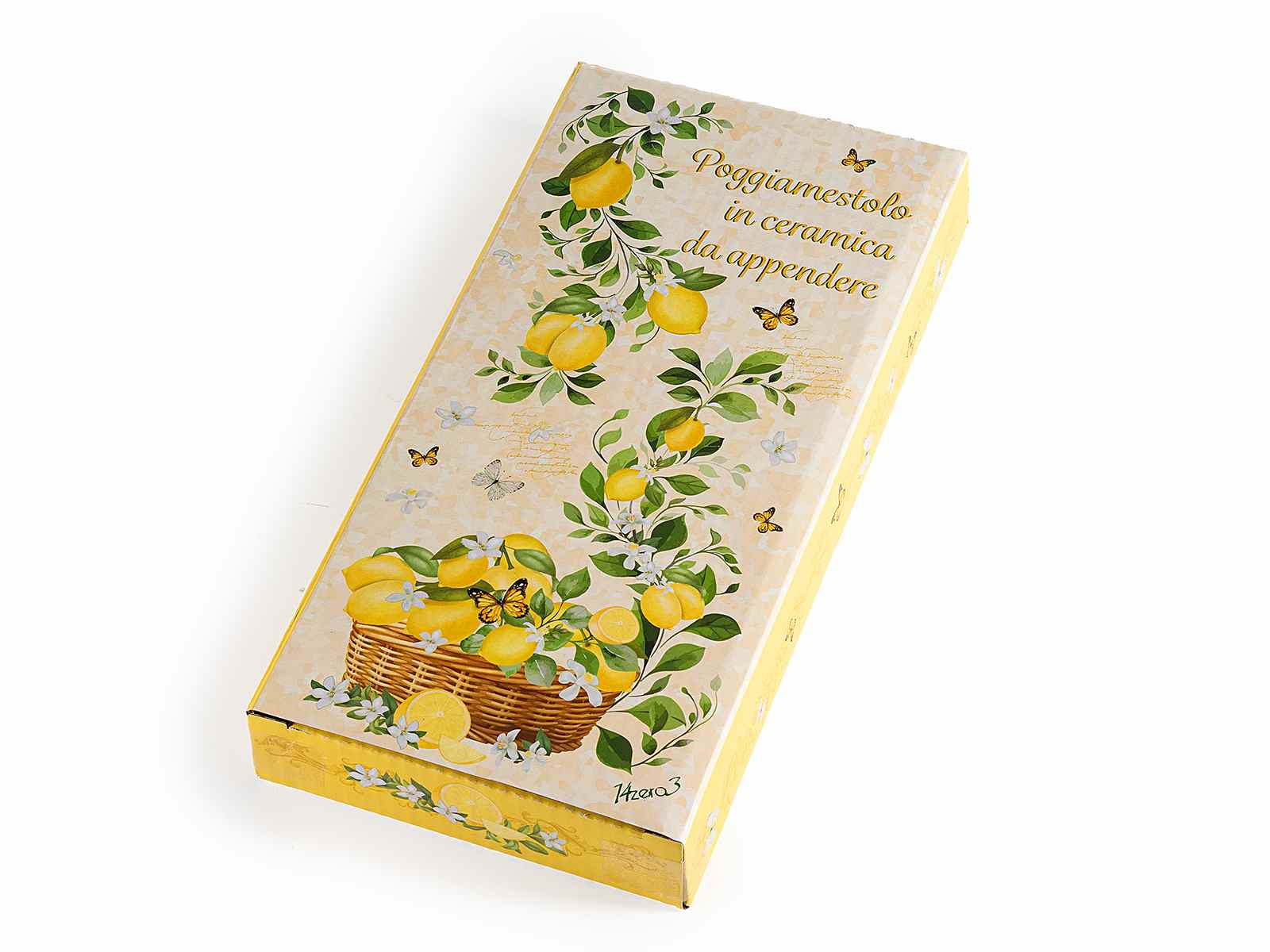 Reposacucharas de cerámica con decoraciones de limón y lazo, en caja de regalo.