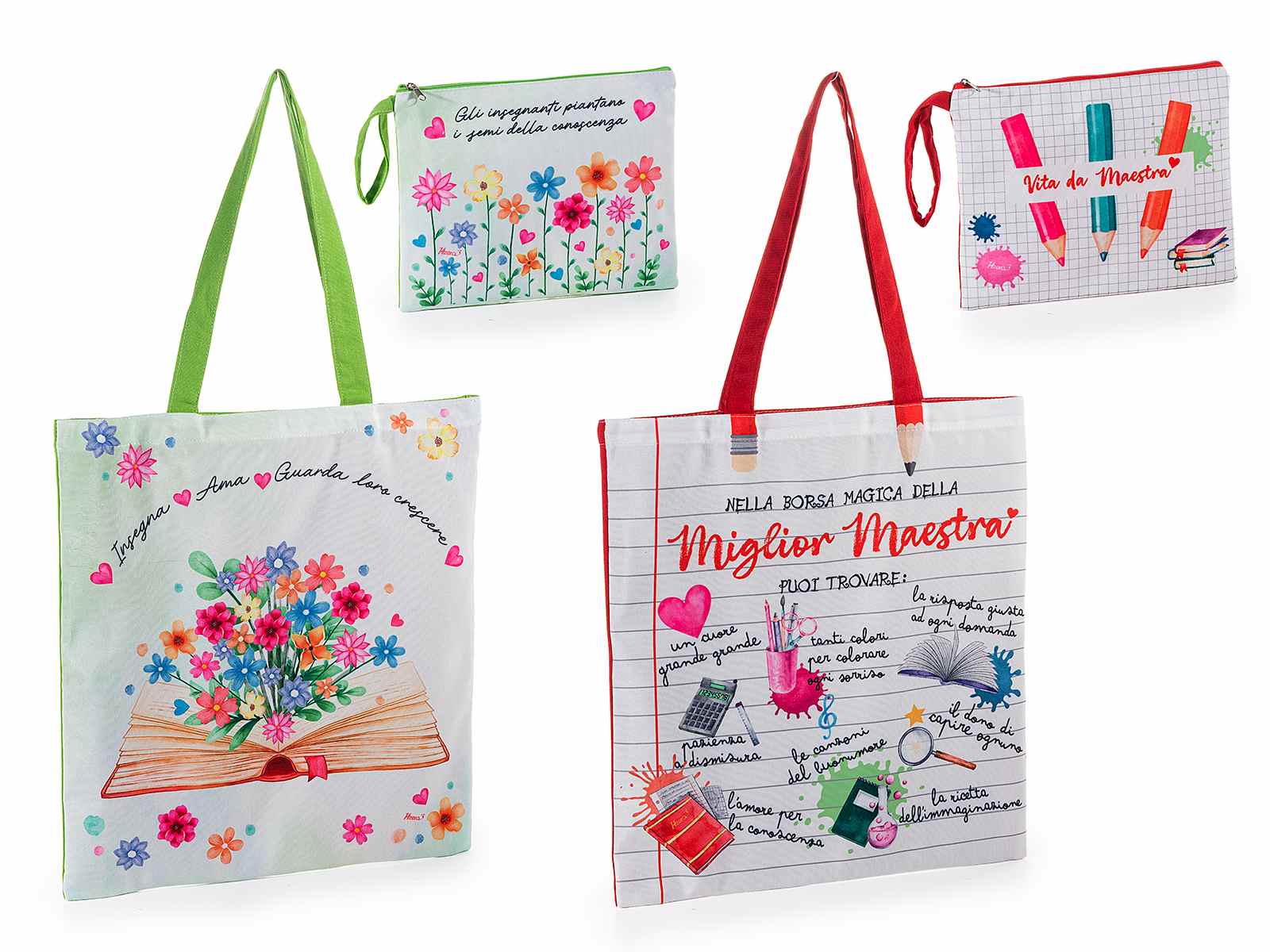 Bolsas de tela y carteras con decoraciones de Profesor/Maestra en un conjunto, perfecto como idea de regalo para profesores