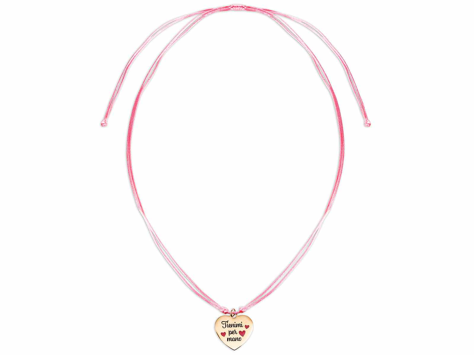 Collar de cuerda con dije de metal de Mamá grabado y esmalte