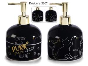 Dispensador de jabón de manos de cerámica con decoraciones de gatos, dispensador de color dorado y jabón con aroma a gardenia incluido