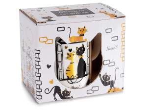 Tazas de porcelana con asa de cola de gato, estampados temáticos. En caja de regalo