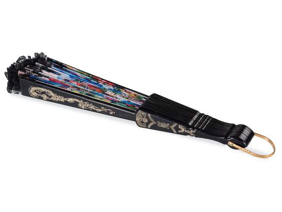 Abanico de plástico y tela con estampado de paisaje y gancho