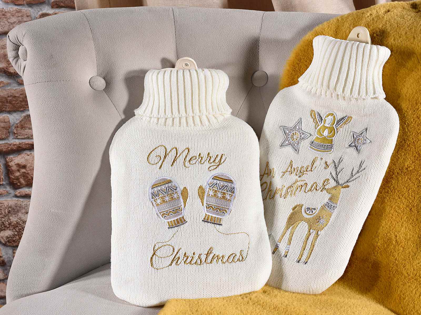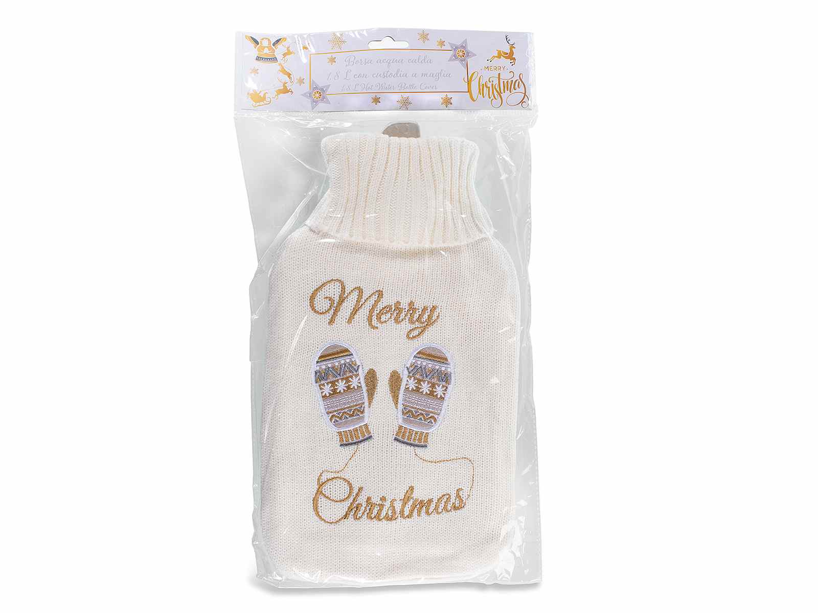 Bolsa de agua caliente de 1,8 L con funda navideña de punto