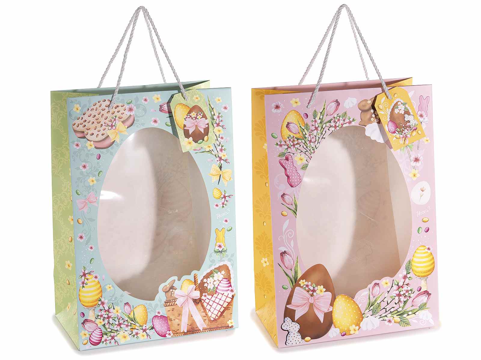 Bolsa de papel de Pascua con asas, ventana ovalada y etiquet