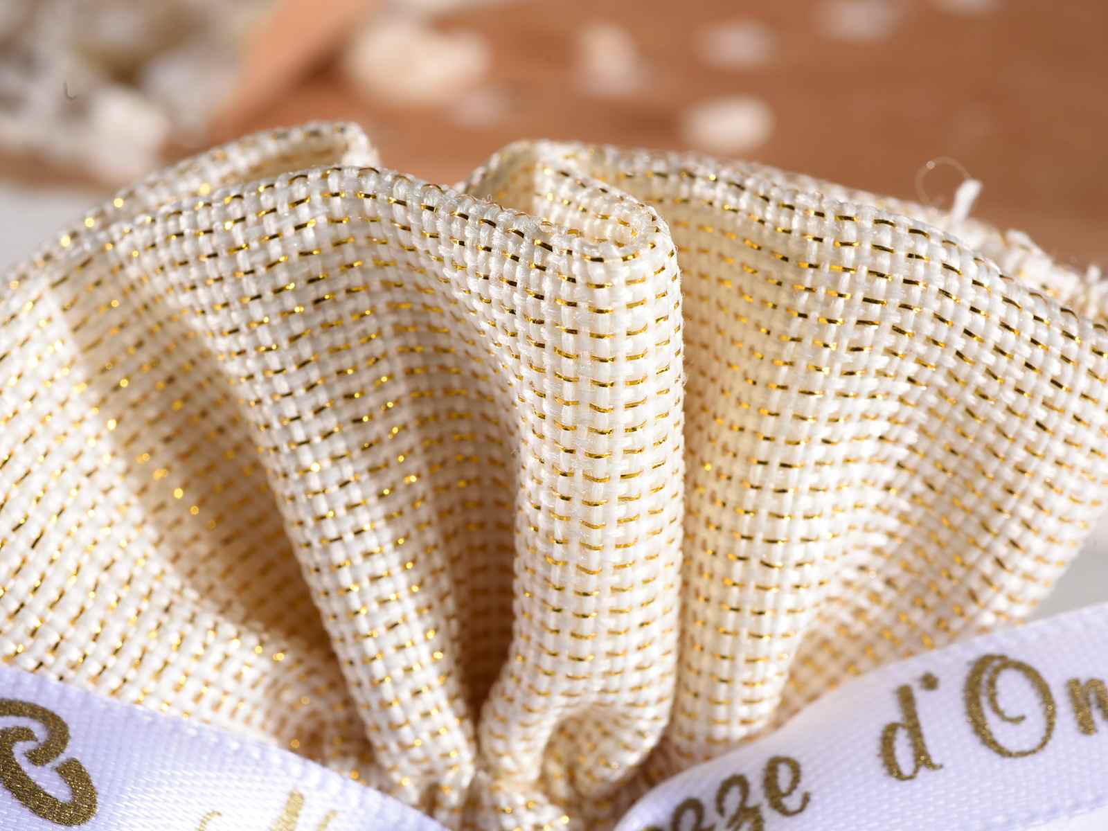 Bolsas de tela para bodas de oro con decoración temática 50 años juntos, con lazo de raso con escritura y cordón