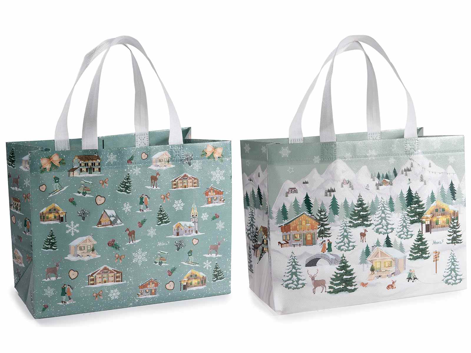 Juego 2 tazas porcelana 70 ml, diseño de pueblo nevado |