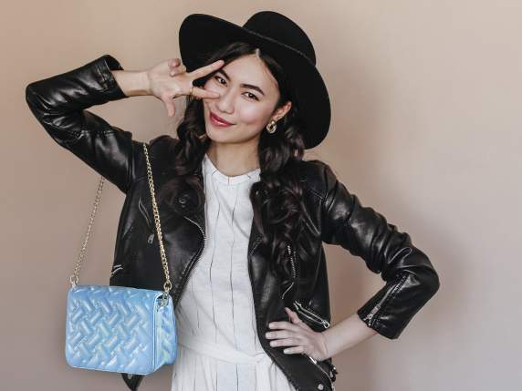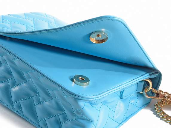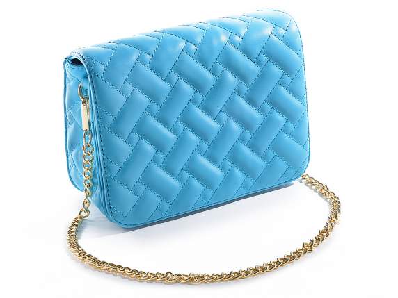 Bolsos de mano o de hombro de piel sintética acolchada color turquesa con cadena dorada