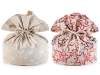 Bolsas de tela para panettone con estampado de estrellas metalizadas y cierre de lazo.