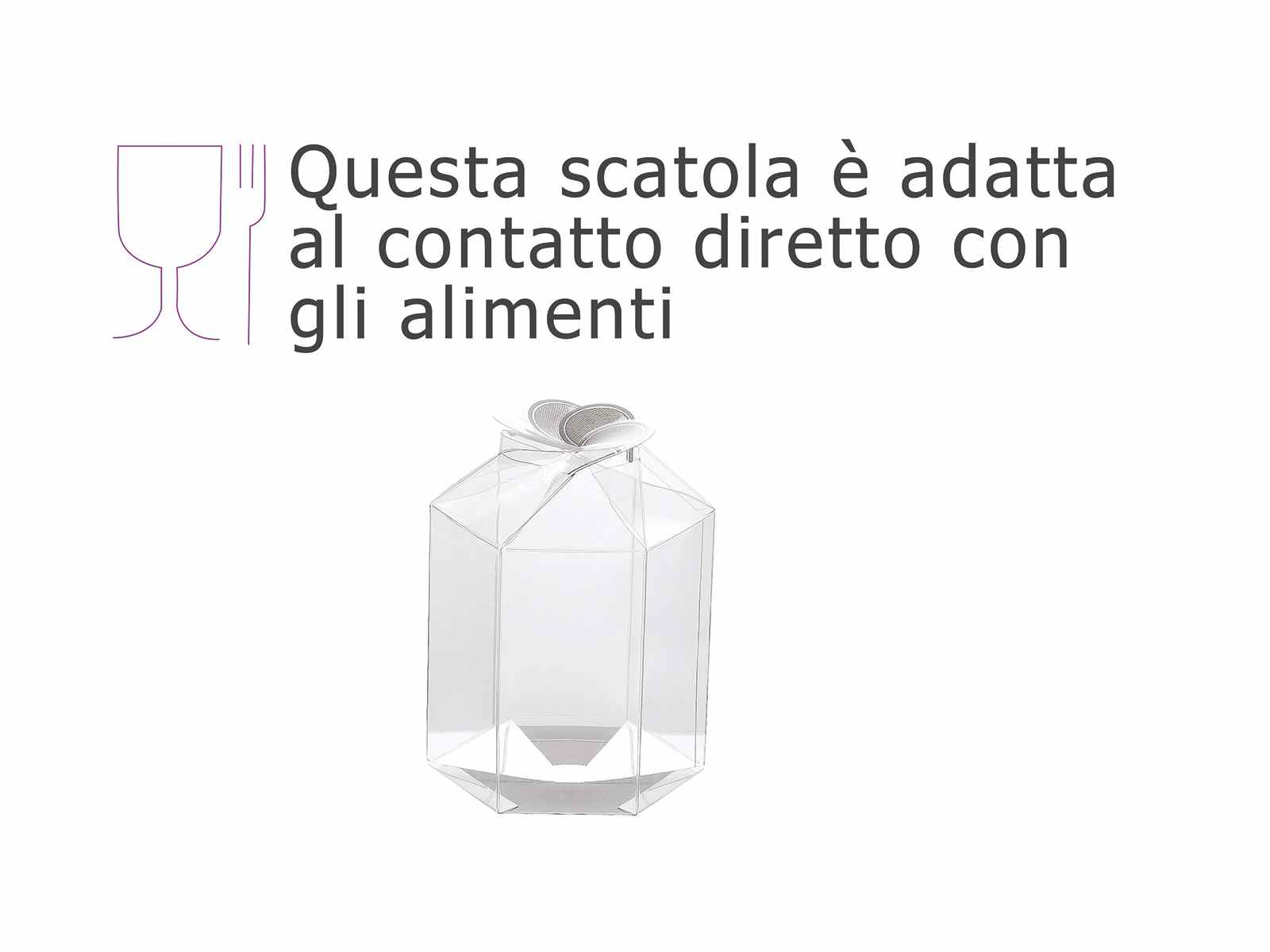 Esta caja hexagonal de PVC con forma especial, de 120 x 105 x 120 mm, es hermosa y elegante. Puede usarla para envasar velas aromáticas (de nuestra amplia selección de tamaños) o incluso alimentos, como chocolates y galletas caseras, forrando el interior con papel de seda. Para un aspecto más sofisticado, forre el interior con tul u organza color marfil o blanco.