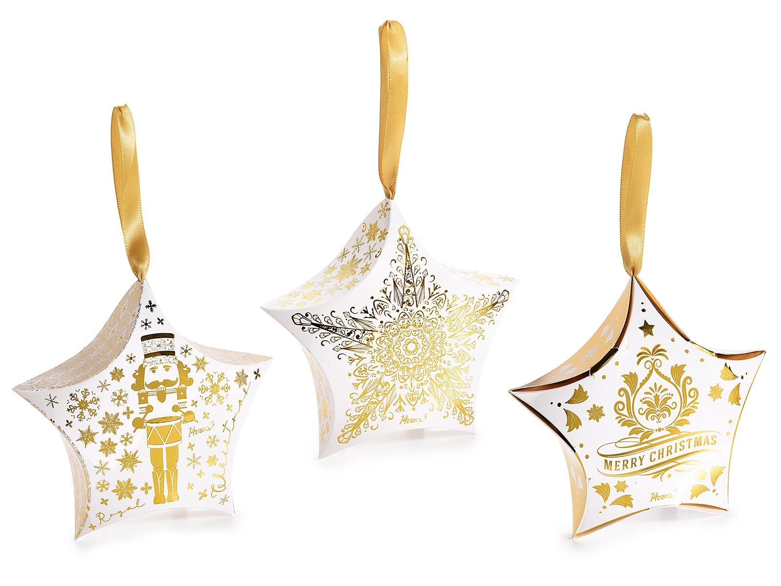 Caja papel colgante forma estrella y estampado dorado