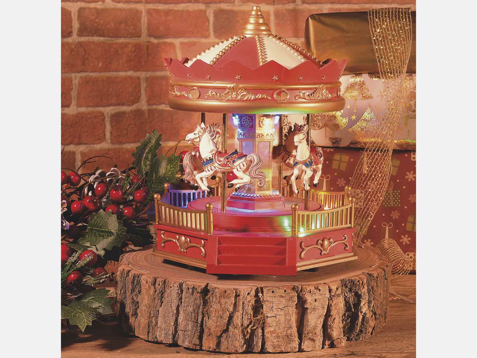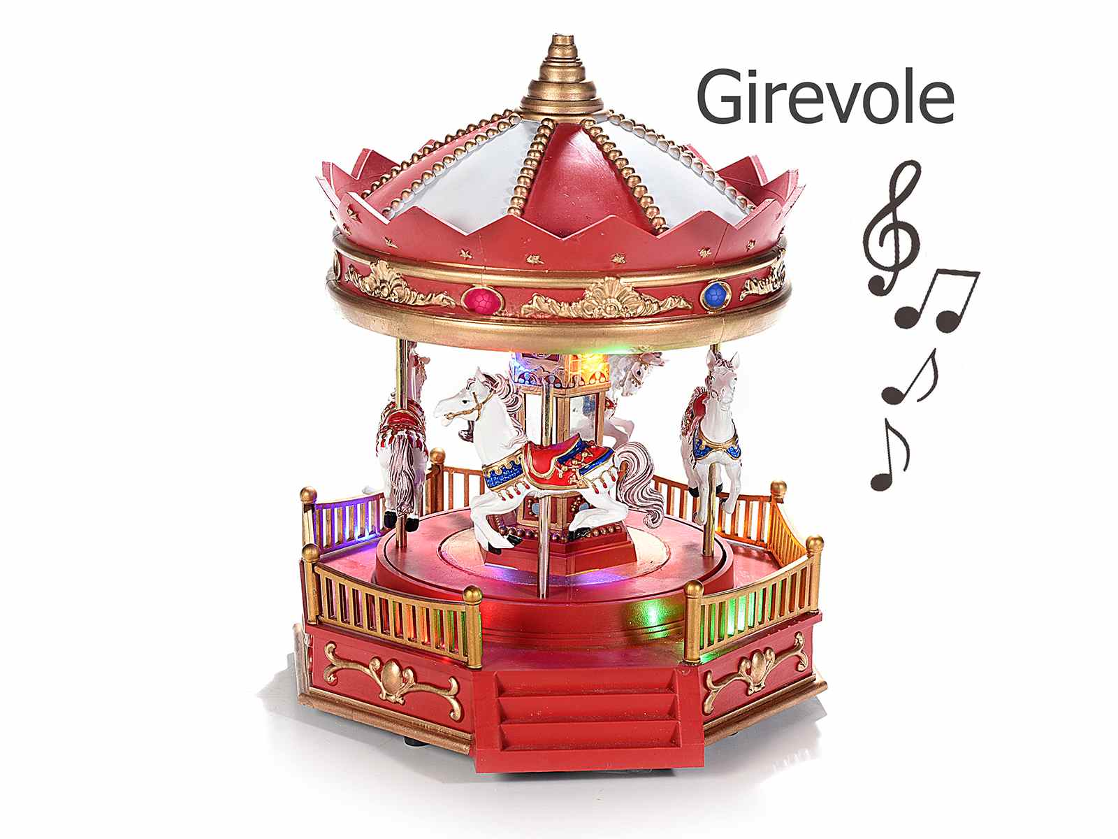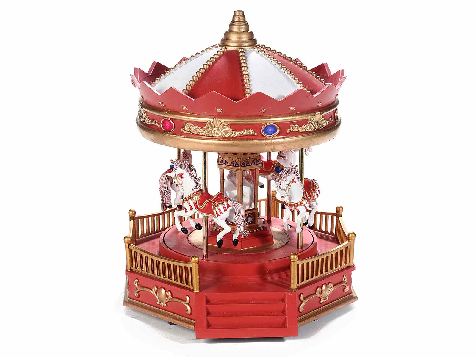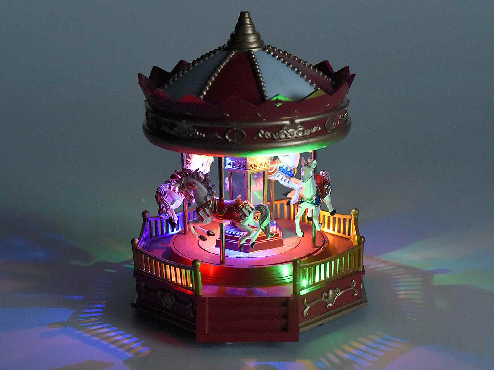 Caja de música de carrusel de resina con luces, música y movimiento para pueblos navideños