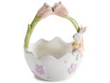 Cesta cerámica con asa, decorada con zanahoria y un conejo