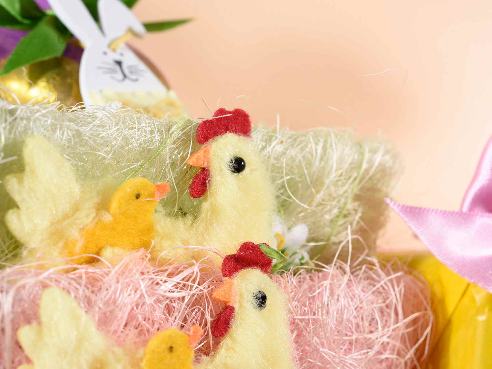 Cesta de fibra natural colorida con decoración de Pascua