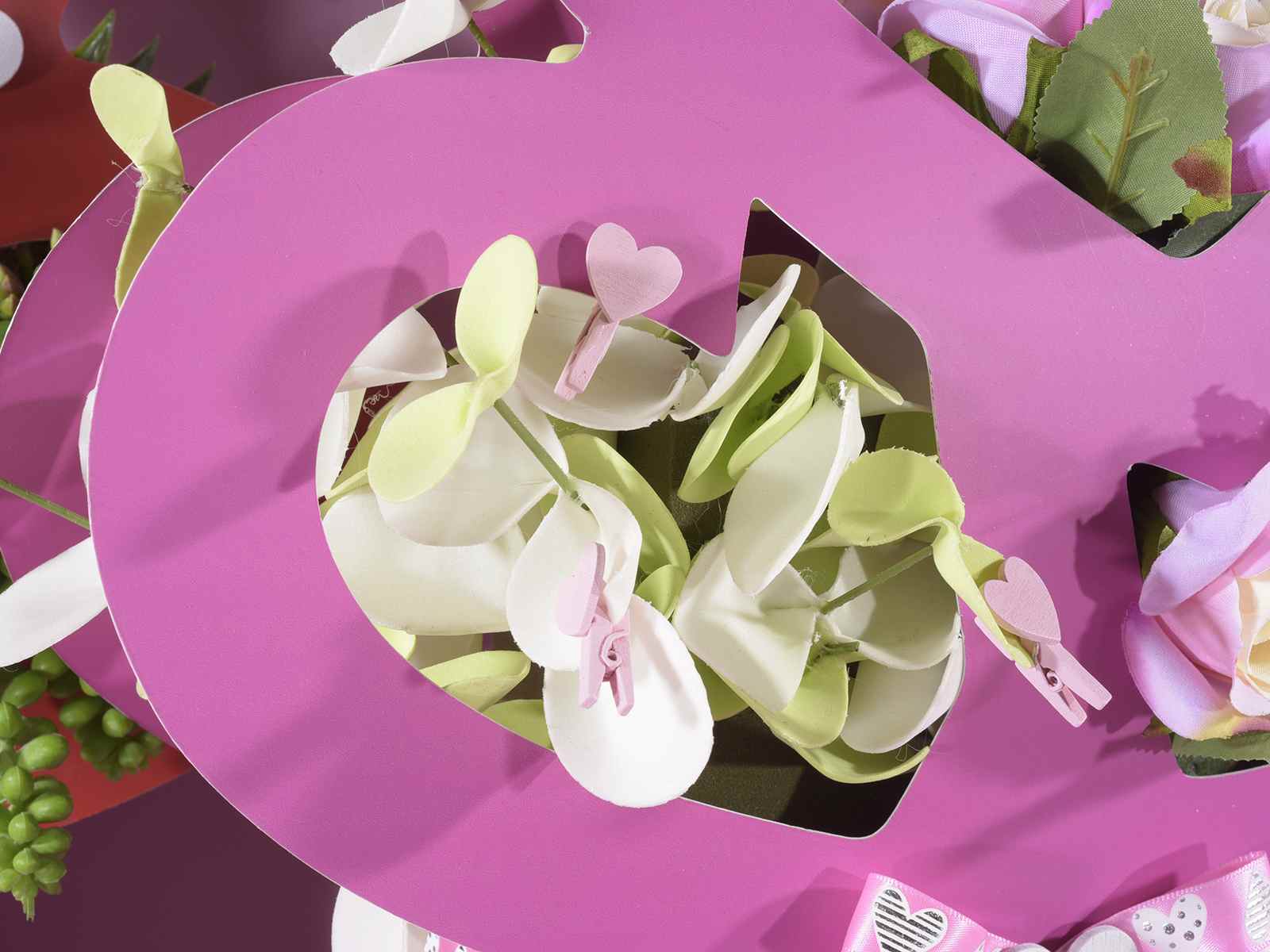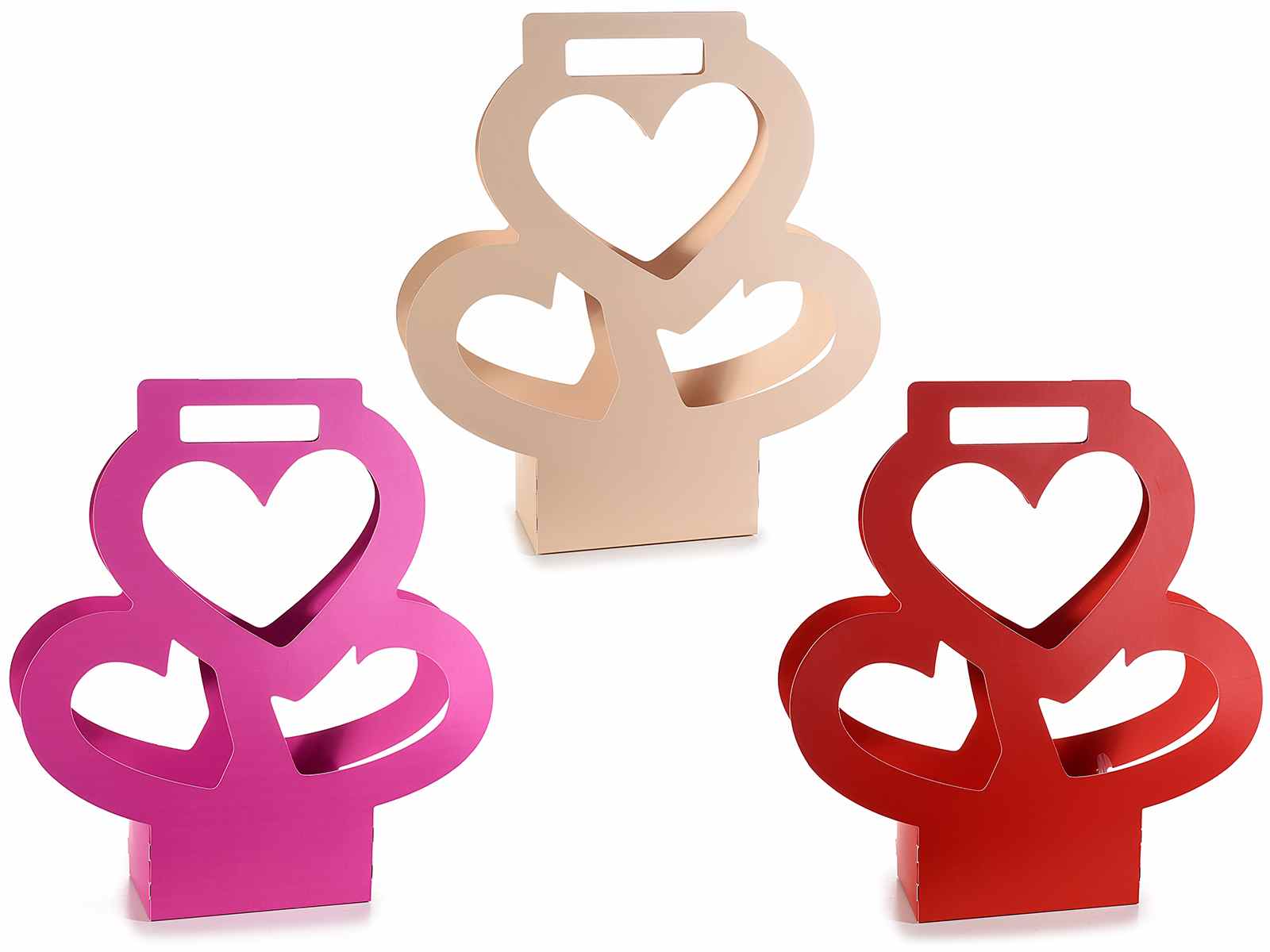 Cesta de flores en forma de corazón en papel semi-hidrófugo