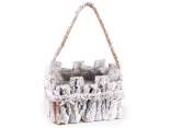Cestas para San Valentín realizadas en madera efecto corteza con asa de cuerda rígida y corazón rojo decorativo.