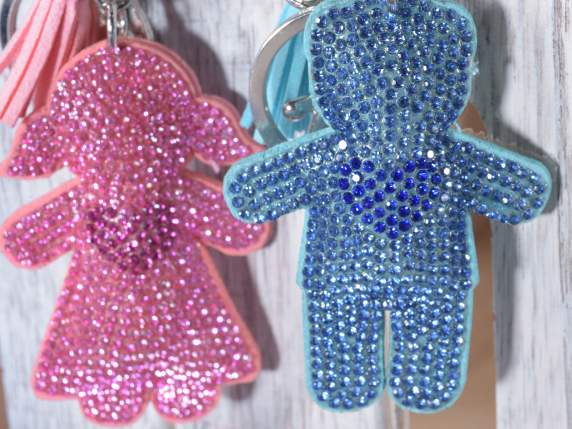 Charms/llavero bebé azul con purpurina, borla y corazón colgante
