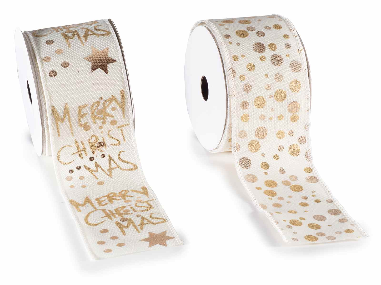 Cintas navideñas moldeables con impresión dorada y la inscripción "Feliz Navidad".